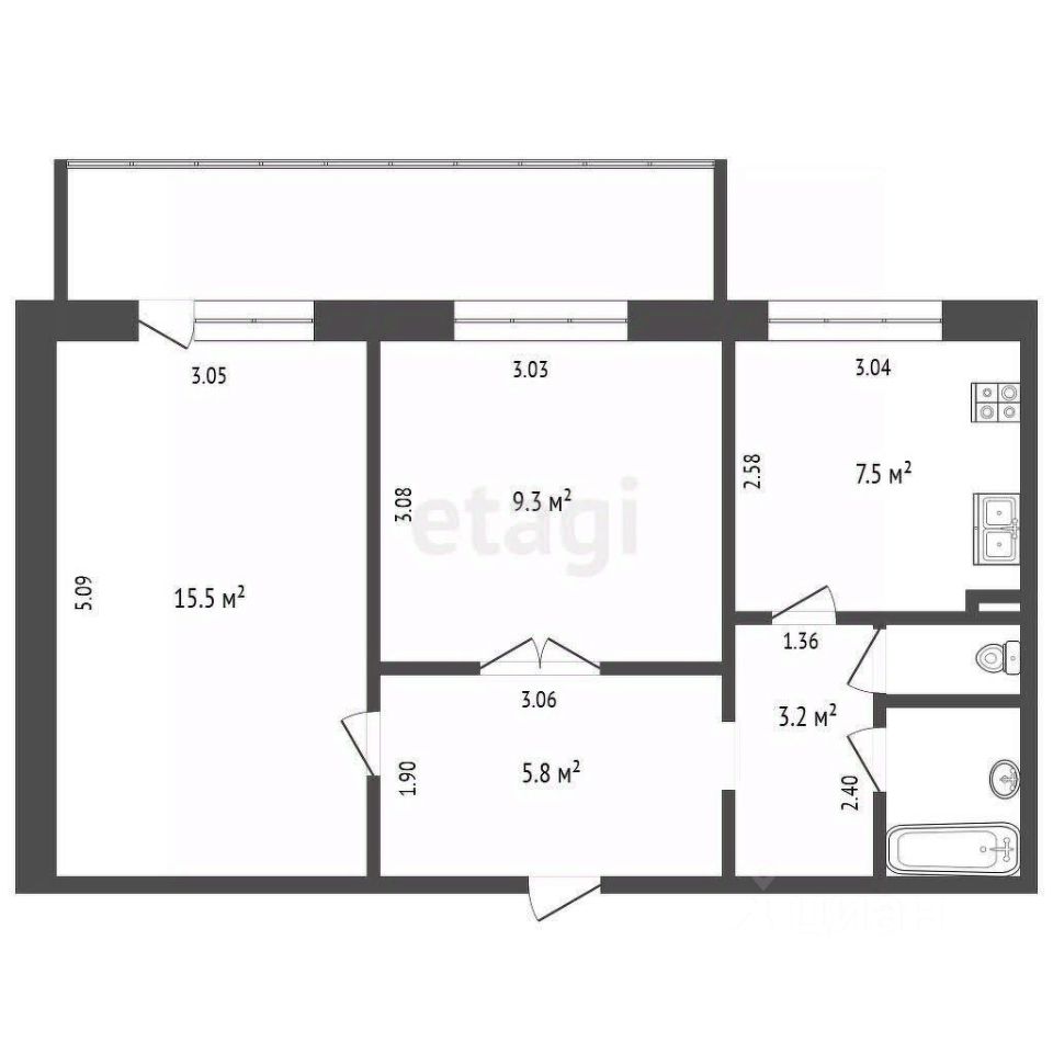• Раздельный санузел, на полу и стенах кафель.