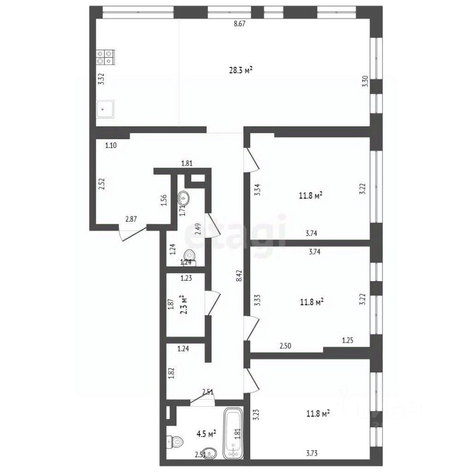 Большая кухня гостиная для большой и дружной семьи! Три изолированых комнаты, два санузла! В квартире сделан современный ремонт из качественных материалов.