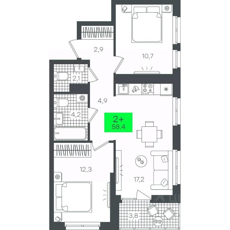 Продаётся 2-комнатная квартира в строящемся доме (В5.1 (Малкова, 19)), срок сдачи: III-кв. 2026, общей площадью 58.46 кв.м., на 8 этаже. Компания 4D приступила к строительству нового жилого комплекса "Гранд квартал". Новый ЖК находится в зеленой зоне Калининского района, южнее микрорайона Тюменская слобода.