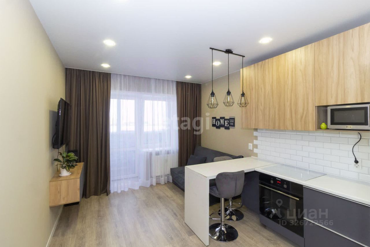 К продаже предлагается квартира формата 1+ с современным ремонтом в светлой нейтральной гамме, что создает ощущение простора и готово к заселению. Планировка продумана: прихожая оборудована шкафом-купе, а изолированная спальня имеет полноценный гарнитур для хранения вещей. Пространство кухни-гостиной функционально зонировано, обеспечивая комфорт как для приготовления пищи, так и для отдыха. Ключевым преимуществом является большая утепленная лоджия, которую можно использовать как дополнительную зону. При продаже в квартире остаётся часть мебели и техники: кухонный гарнитур со встроенной варочной панелью и духовым шкафом, холодильник, диван в гостиной, кровать и туалетный столик в спальне, что минимизирует ваши расходы и усилия при переезде. Дом построен из кирпича, что гарантирует хорошие теплоизоляционные свойства. Локация отличается развитой инфраструктурой: в шаговой доступности находятся магазины первой необходимости. Транспортная доступность отличная — в нескольких минутах ходьбы расположена конечная остановка трех автобусных маршрутов, что обеспечивает быстрое сообщение с любым районом города. На личном автомобите дорога до центра и железнодорожного вокзала занимает около 15 минут, до аэропорта — 20. Двор благоустроен, огорожен и находится под видеонаблюдением, на территории есть детский сад и игровые площадки, создавая безопасную среду для семей с детьми.