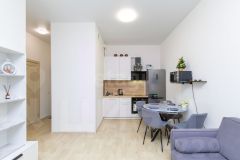 Однокомнатная квартира в современном малоэтажном доме расположена в экологически чистом и тихом районе пригорода. Общая площадь объекта составляет 38 квадратных метра и включает функциональное пространство с изолированной комнатой, кухней-гостиной, совмещенным санузлом с современной отделкой и лоджией 3,7 кв.м. Планировка продумана для комфортного проживания: кухня-гостиная позволяет организовать обеденную зону и место для отдыха. Квартира выполнена с качественной чистовой отделкой, готова к заселению. Район характеризуется развитой социальной инфраструктурой: в шаговой доступности находятся детский сад, школа, супермаркет, аптека, кофейня пункты выдачи товаров и салоны красоты. Транспортная доступность обеспечивается регулярным автобусным сообщением с городом, остановка расположена в нескольких минутах. Ключевое преимущество — расположение в спокойной зоне вдали от магистралей и шума, окруженной зелеными насаждениями. Это решение оптимально для тех, кто ищет баланс между доступностью городских возможностей и преимуществами загородной жизни — свежий воздух, безопасность и тишина. Объект представляет интерес для первичного приобретения недвижимости, инвестирования или сдачи в аренду.