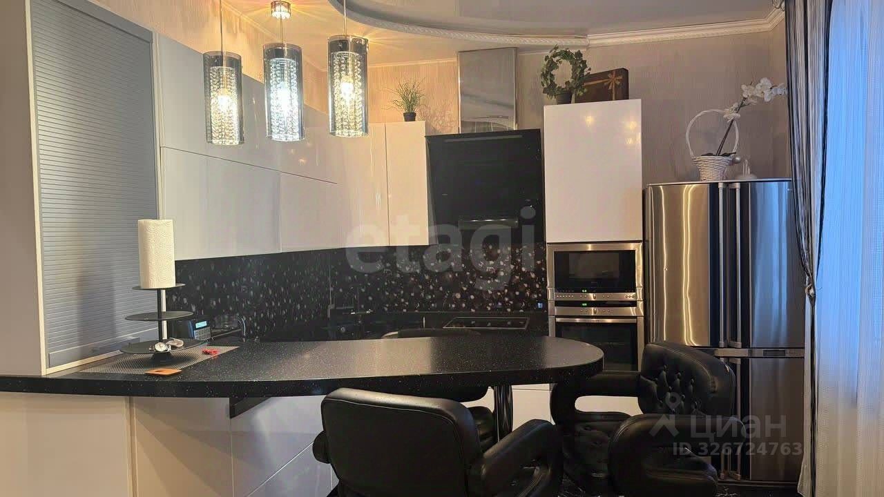 Кухня с каменной столешницей и технологией движения компании BLUM, укомплектована премиальной техникой: духовой шкаф и СВЧ — NEFF, холодильник Sharp, вытяжка Elica, посудомоечная, стиральная, сушильная машина — BOSCH, фильтр для воды Atoll. Остаются при продаже три телевизора Samsung (диагональ 55 и 40).