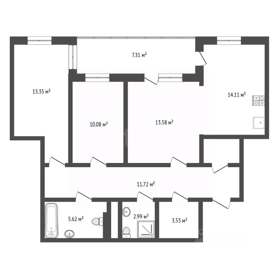Общая площадь74,3 м²
