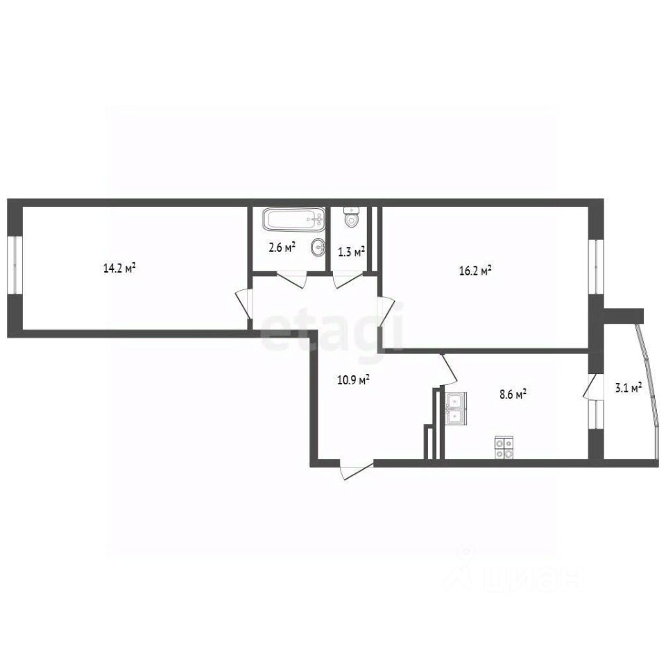 2. Удобная планировка — 2 изолированные спальни и просторная кухня, раздельный санузел.