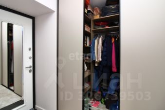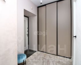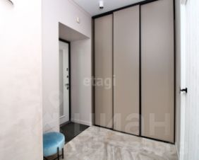 Вместительная гардеробная с зеркальной дверью скрывает от посторонних глаз большую систему хранения, поэтому прихожую нет необходимости загромождать шкафами, достаточно небольшой декоративной консоли.