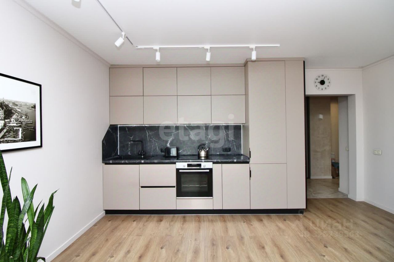 Наличие современной кухни, оборудованной по последнему слову техники.Кухня имеет большую рабочую поверхность и обеденный стол, за которым легко разместятся гости. Систем хранения очень много, часть из них выполнена в виде антресолей, которые, благодаря своей цветовой гамме и подсветке, не давят, а создают дополнительный уют.