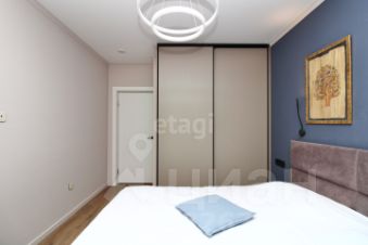 Спальня очень уютная и больше похожа на стильный будуар. Здесь есть место для двуспальной кровати, встроенного шкафа, туалетного столика и большого напольного зеркала во весь рост.