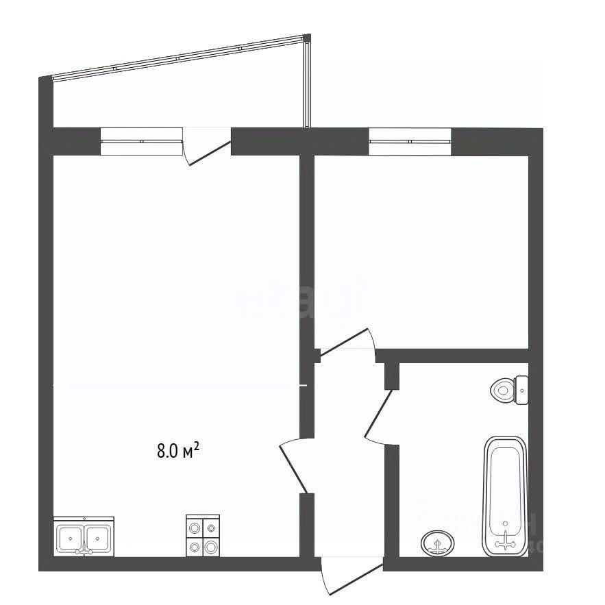 остаются практичные элементы, экономящие ваш бюджет: кухонный гарнитур, а также два встроенных шкафа-купе (в комнате и в прихожей).
