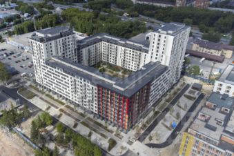 Дом 1 представляет собой замкнутый квартал переменной высотности. В нём 617 квартир от 21 до 127 кв. метров.
