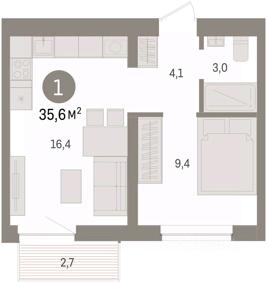 Квартира с кухней-гостиной и одной спальней в жилом районе "Речной порт". Особенности планировки: балкон, вид во двор, предчистовая отделка.