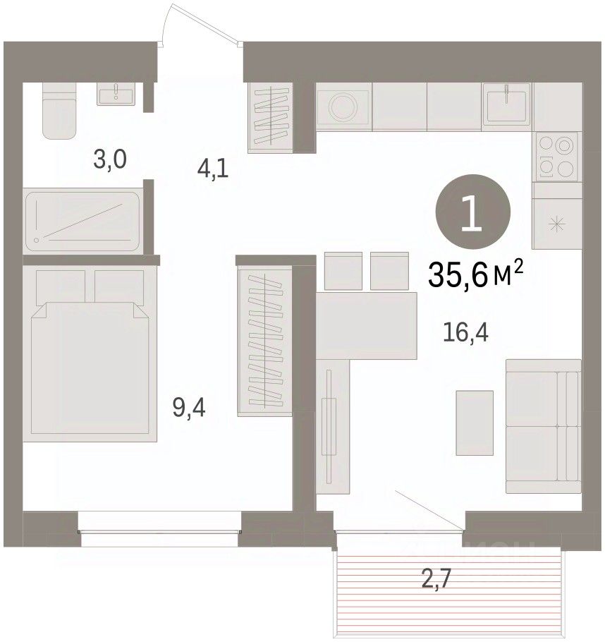 Квартира с кухней-гостиной и одной спальней в жилом районе "Речной порт". Особенности планировки: балкон, вид во двор, предчистовая отделка.