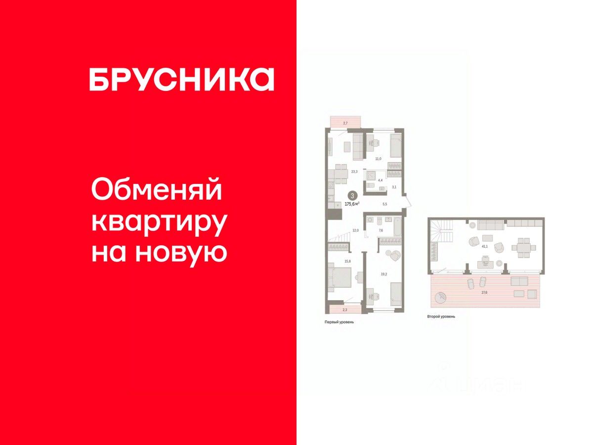 Квартира с кухней-гостиной и тремя спальнями в жилом районе "Речной порт". Особенности планировки: балкон, вид во двор, лоджия, потолки 3 м и выше, свободная планировка, терраса на крыше.