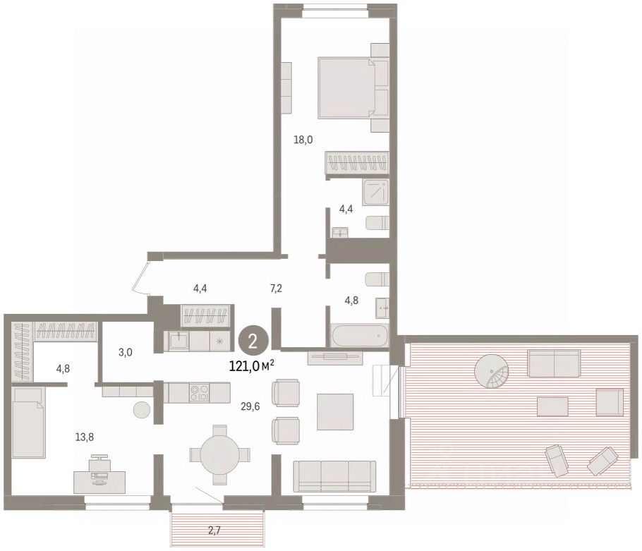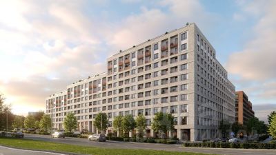 Квартира с кухней-гостиной и двумя спальнями в жилом районе "Речной порт". Особенности планировки: балкон, вид во двор, окна на две стороны, свободная планировка, терраса на крыше.