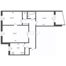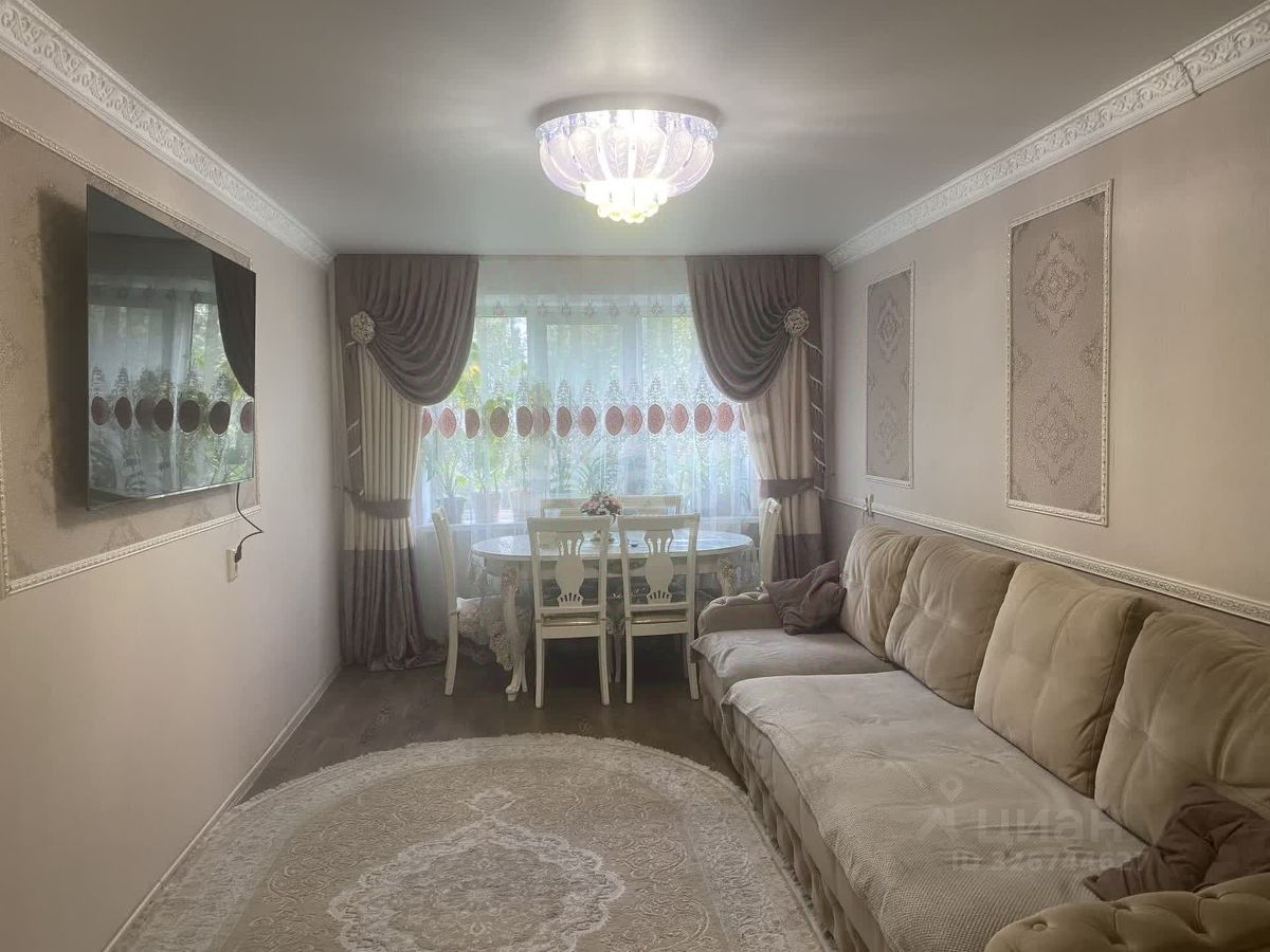 Трехкомнатная квартира общей площадью 66.3 кв. м расположена на четвертом этаже в жилом районе с развитой инфраструктурой. Квартира отличается рациональной планировкой "распашонка" с изолированными комнатами, что обеспечивает комфортное проживание для семьи.
