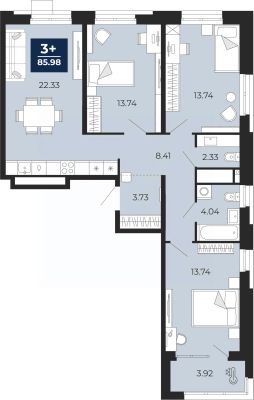 Продается 3-комн. квартира с предчистовой отделкой в ЖК "Мириады" на 11 этаже. Общая площадь: 84.02 кв.м., жилая: 41.22 кв.м., площадь просторной кухни-столовой: 22.33 кв.м. Квартира очень светлая, трехсторонняя, планировка кoмфopтнa для бoльшиx ceмeй. В квартире один балкон, один совмещенный и один раздельный санузел. Высота потолков 2.7 м.