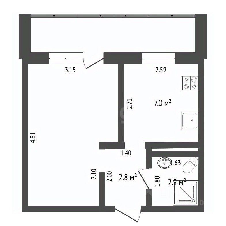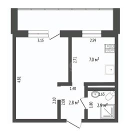 . Классическая планировка с изолированной комнатой, кухней около 7 кв. м, совмещенным санузлом и лоджией обеспечивает рациональное использование пространства.