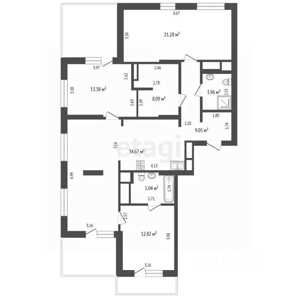 формата 3+ площадью 110 кв. м. на 15 этаже 16-этажного дома в уникальном жилом комплексе на Гастелло!