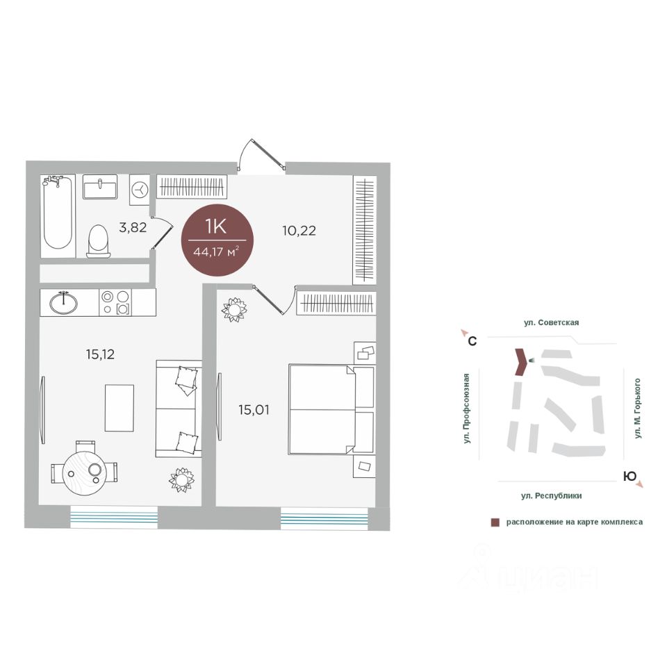 Территория квартала - это квадрат улиц Профсоюзная-Республики-Советская-М.Горького. Застройщиком спроектированы квартиры от студий до четырехкомнатных, общей площадью от 29.6 до 146.3 кв. м. Дома сдаются в предчистовой отделке.