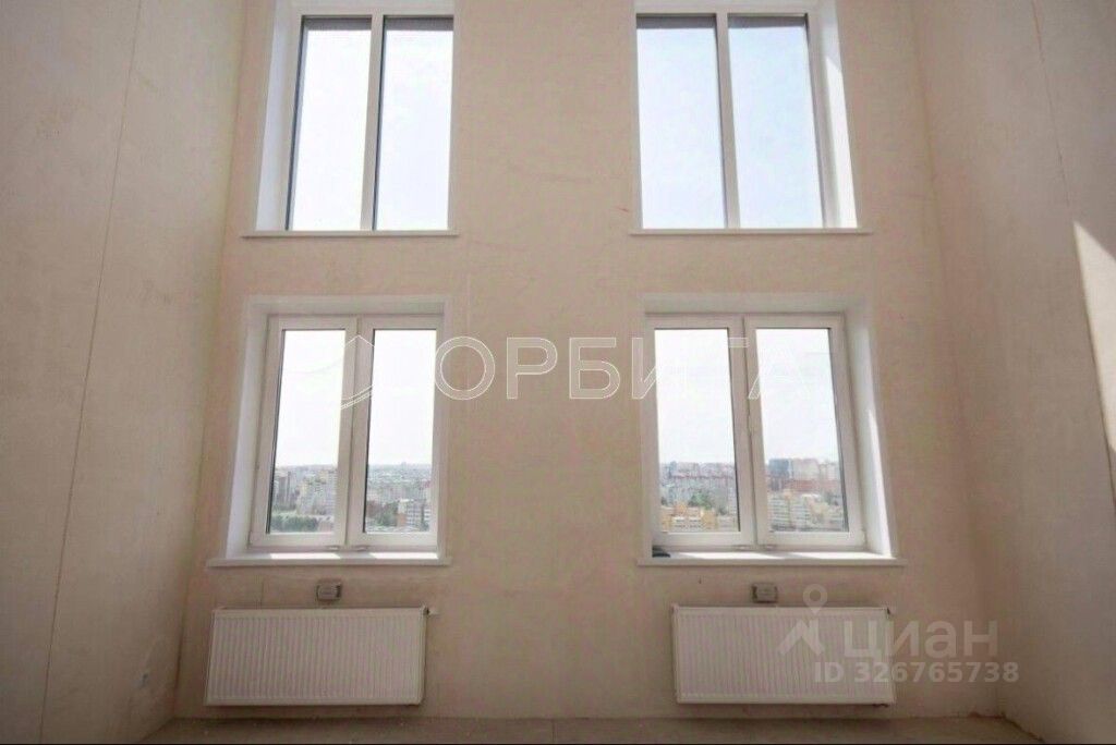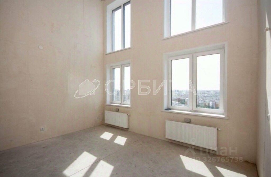 Продается уникальная студия в стиле хайфлет на 23 этаже. Вид на реку Тура и город. Площадь 25.7 м², потолки 5.2 м, есть возможность добавить второй уровень.