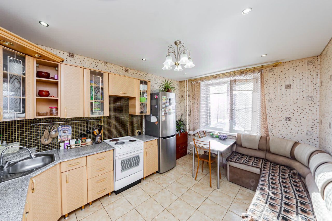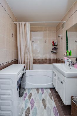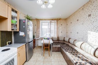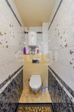-квартира продается с косметическим ремонтом: на полу линолеум, на стенах светлые обои, потолки натяжные; ванная и туалет полностью отделаны кафельной плиткой;