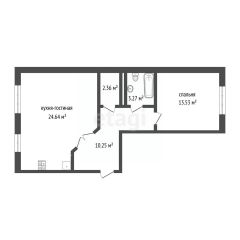 • Кухня — 24,6 кв.м, есть возможность разместить диван — дополнительное спальное место