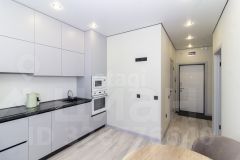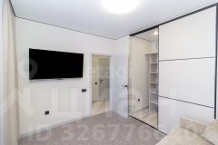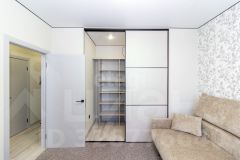 В оформлении использована нейтральная цветовая гамма, создающая спокойную атмосферу. Ключевым преимуществом объекта является продуманная планировка с полноценной гардеробной зоной, что решает вопрос хранения вещей.
