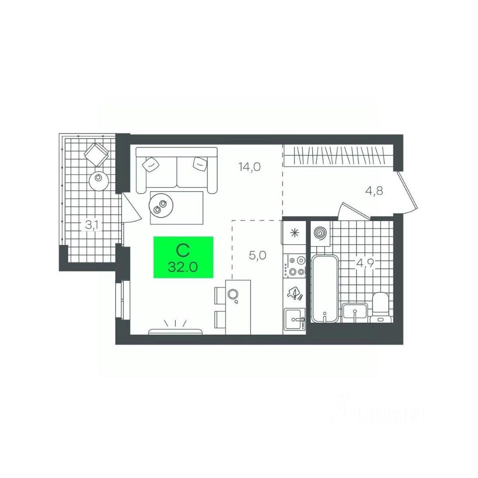 Общая площадь32 м²