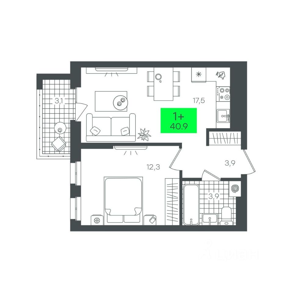 Общая площадь40,96 м²