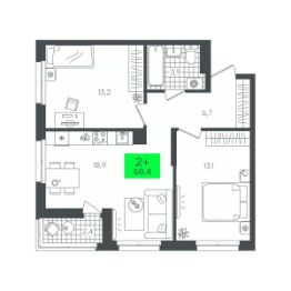 Продается 2-комн. квартира, 58,49 м²