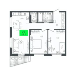 Общая площадь64,9 м²