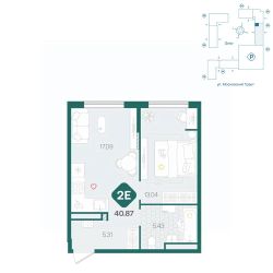 Удобная двухкомнатная квартира форматас отдельной спальней и большим санузлом. В каждой комнате выполнено зонирование: в спальне — на пространство для отдыха и работы, в кухне-гостиной — на гостевое и обеденное. В прихожей можно организовать гардеробную.