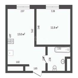 Предлагается к покупке квартира формата 1+ (кухня-гостиная + спальня) в новом жилом комплексе в центре города (район ул. М. Горького).
