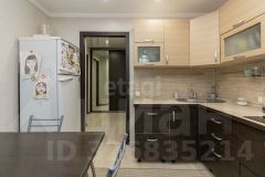 Уютная кухня с функциональным кухонным гарнитуром, встроенной техникой, обеденной зоной у окна. Всё продумано для удобства и практичности, в квартире много естественного света.