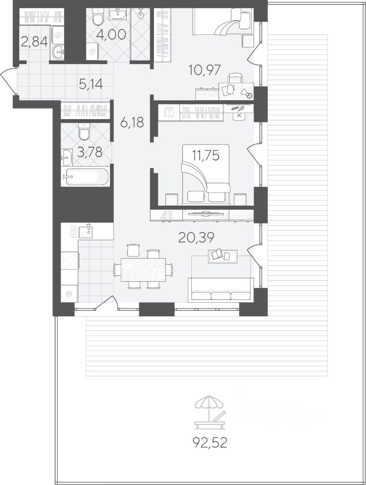 Двухкомнатная квартира 157.57 кв.м на 2 этаже — это удобное пространство для комфортной жизни. Отдельные спальни позволят каждому члену семьи иметь личное пространство. В кухне-гостиной комфортно вместе готовить, проводить семейные ужины или настольные игры с друзьями.