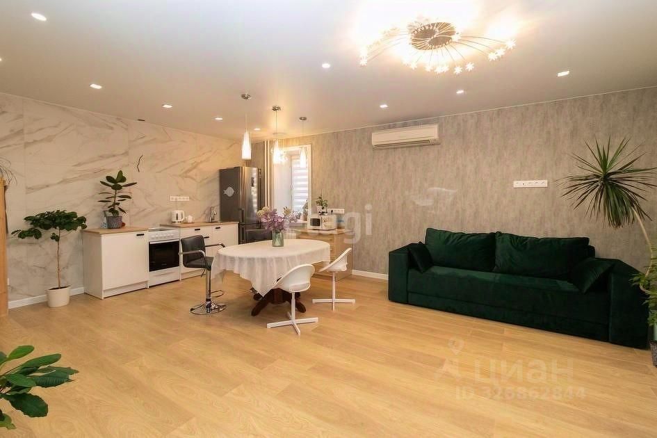 Уважаемые покупатели! Солнечная квартира формата 2+. В кухне-гостиной зона кухни оформлена большеформатным керамогранитом 0,60м*1,20м с принтом мрамора, выполнен вывод для круглой вытяжки. Обилие точечного света позволяет регулировать освещение, выбирая необходимые зоны кухни, либо зоны гостиной. Выполнены выводы под телевизор в 2 местах гостиной. Электрические теплые полы находятся в обоих санузлах. Во время отопительного сезона квартира тёплая. В обоих санузлах выполнены необходимые выводы под стиральную машинку, установлены электрические системы вентиляции, а также достаточное количество розеток. Стояки в обоих санузлах поменяны. В большом санузле также есть вывод для водонагревателя. В санузлах выложен большеформатный керамогранит 0,60м*1,20м. В коридоре на полу также керамогранит, стилизованный под доски. В кухне-гостиной на полу качественный ламинат, в зоне окна - плитка. В комнате, рядом с кухней гостиной, также кафель.
