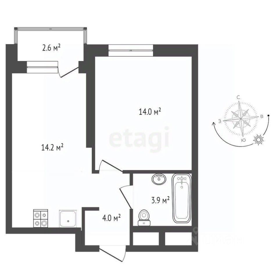 ПЛАНИРОВКА продумана до мелочей. Прихожая правильной формы с местом для шкафа-купе. Кухня- гостиная (14,2 кв.м.) с выходом на балкон (2,6 кв.м.). Комната (14 кв.м.) имеет правильную форму, что очень удобно для организации спальни или детской.