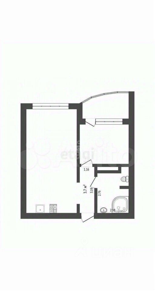 Общая площадь квартиры 43,4квм,
