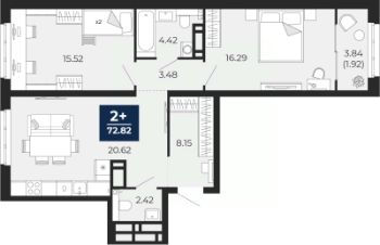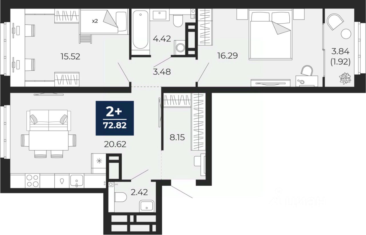 Двухкомнатная квартира с предчистовой отделкой в ЖК "Беринг" на 19 этаже. Общая площадь: 74.74 кв.м., жилая: 31.81 кв.м., площадь просторной кухни-столовой: 20.62 кв.м. Квартира - распашонка, без проходных комнат, окна выходят на paзные стороны дома. В квартире один балкон, один совмещенный и один раздельный санузел. Высота потолков 2.75 м.