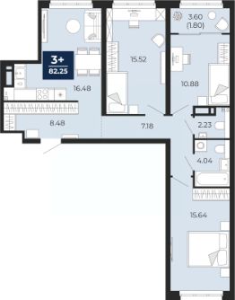 Продается 3-комн. квартира от застройщика с предчистовой отделкой в ЖК "Беринг" на 9 этаже. Общая площадь: 84.05 кв.м. Высота потолков 2.75 м.