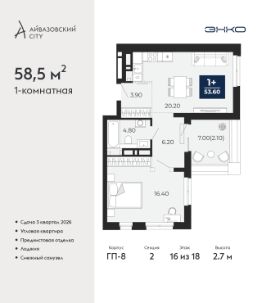 58,5 м²