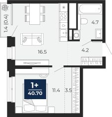 Однокомнатная квартира с предчистовой отделкой в ЖК "Мириады" на 11 этаже. Общая площадь: 41.7 кв.м. Высота потолков 2.7 м.