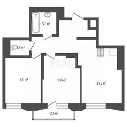 Продается квартира 2+ в совершенно новом жилом комплексе "Кедровый берег". Есть возможность перепланировки под большую 1+.