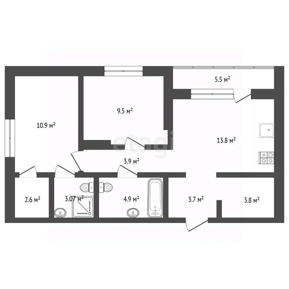 Площадь - 58. 65 кв.м.
