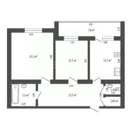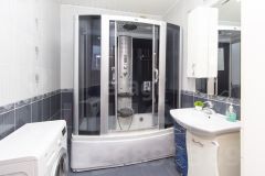 Планировка включает просторную кухню-гостиную, две изолированные спальни и вместительную гардеробную. Из окон спален открывается спокойный вид во двор. Вся техника и мебель остаются новым владельцам. Объект полностью готов к проживанию: установлены пластиковые окна, кондиционер в гостиной, бойлер для бесперебойного горячего водоснабжения, раздельный санузел с душевой кабиной, а также все необходимые счетчики и подключения к интернету и телевидению.