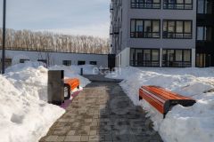 Дворовая территория оборудована интересными и безопасными детскими площадками, зонированными по возрастам. Площадки разнообразные и ко всем жители имеют доступ по ключу домофона.