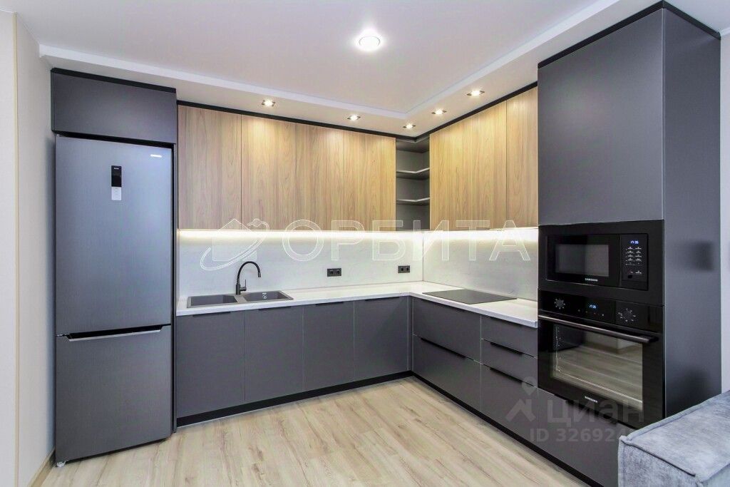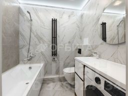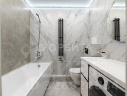 Квартира оборудована современным кухонным гарнитуром со встроенной бытовой техникой и стильной мебелью. Все остается новому владельцу!