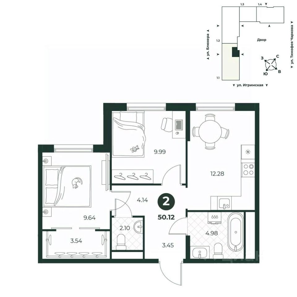 Общая площадь50,12 м²