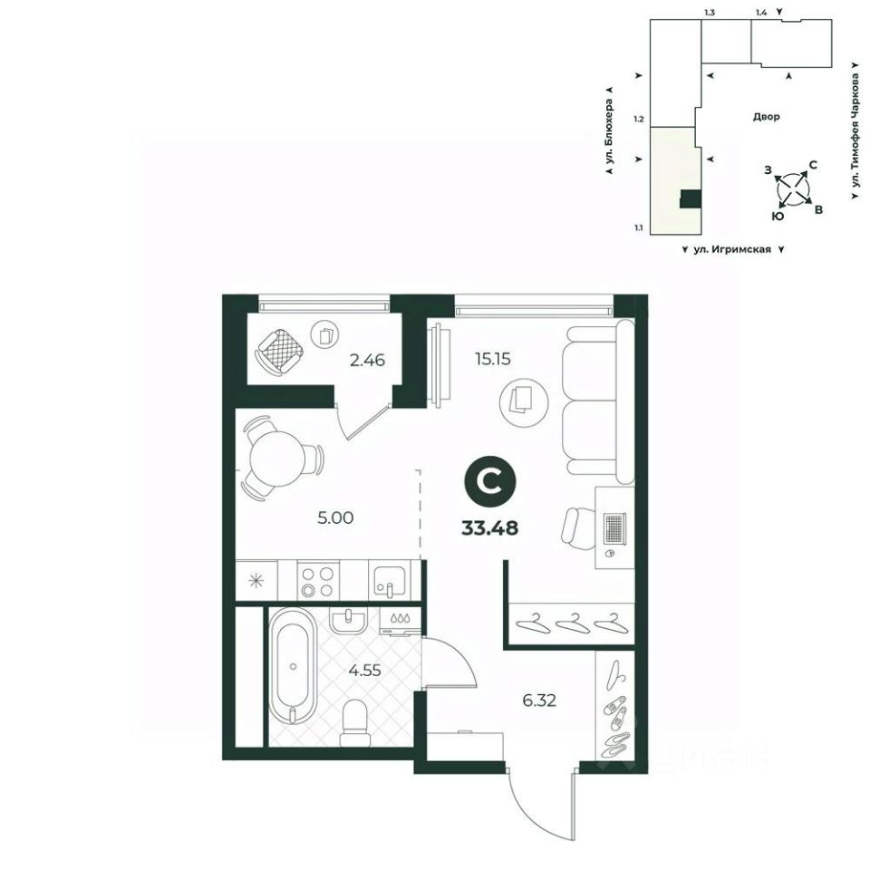 33,48 м²