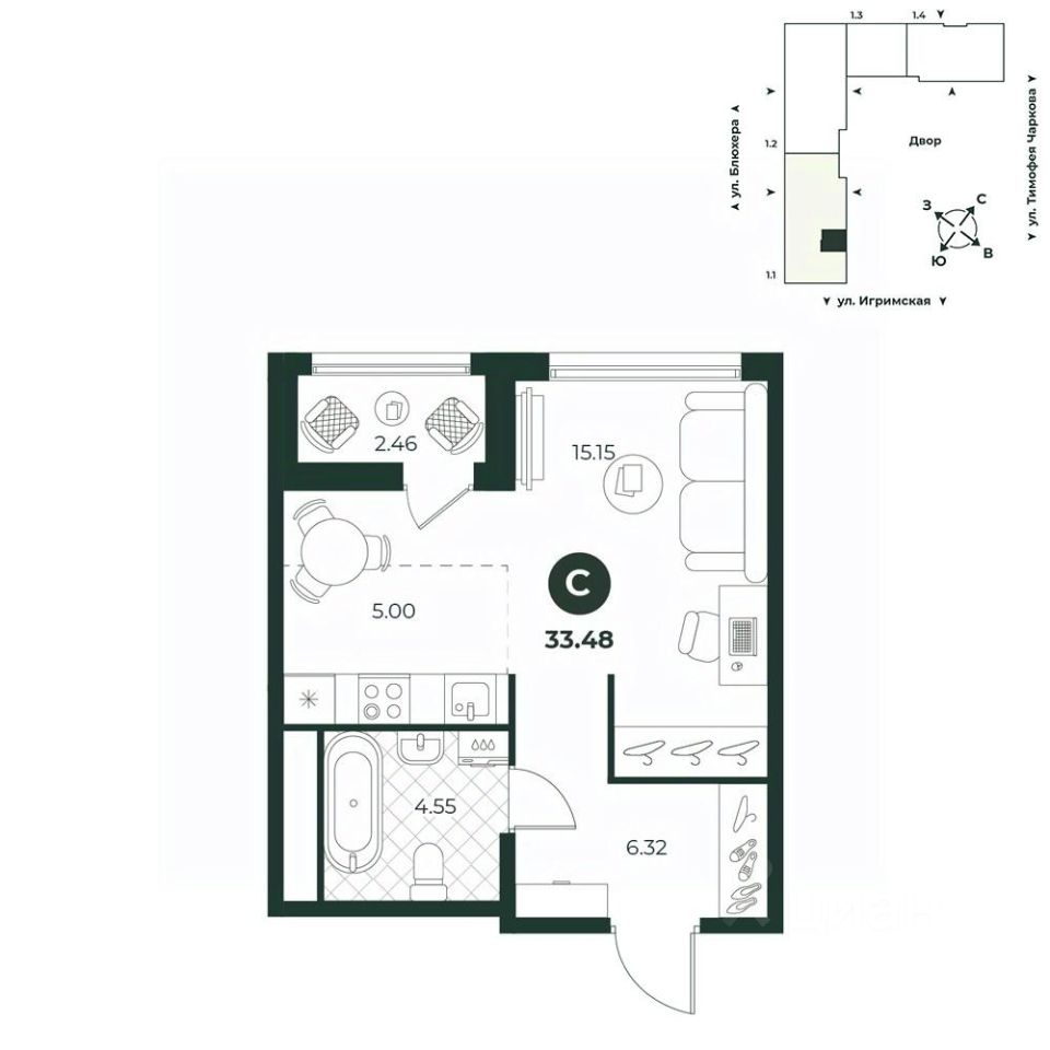 33,48 м²