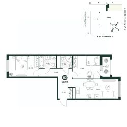 Евротрехкомнатная квартира с просторной кухней-гостиной и двумя санузлами. Площадь прихожей позволяет установить вместительный шкаф. Из спальни предусмотрен выход на лоджию. Окна на две стороны.
